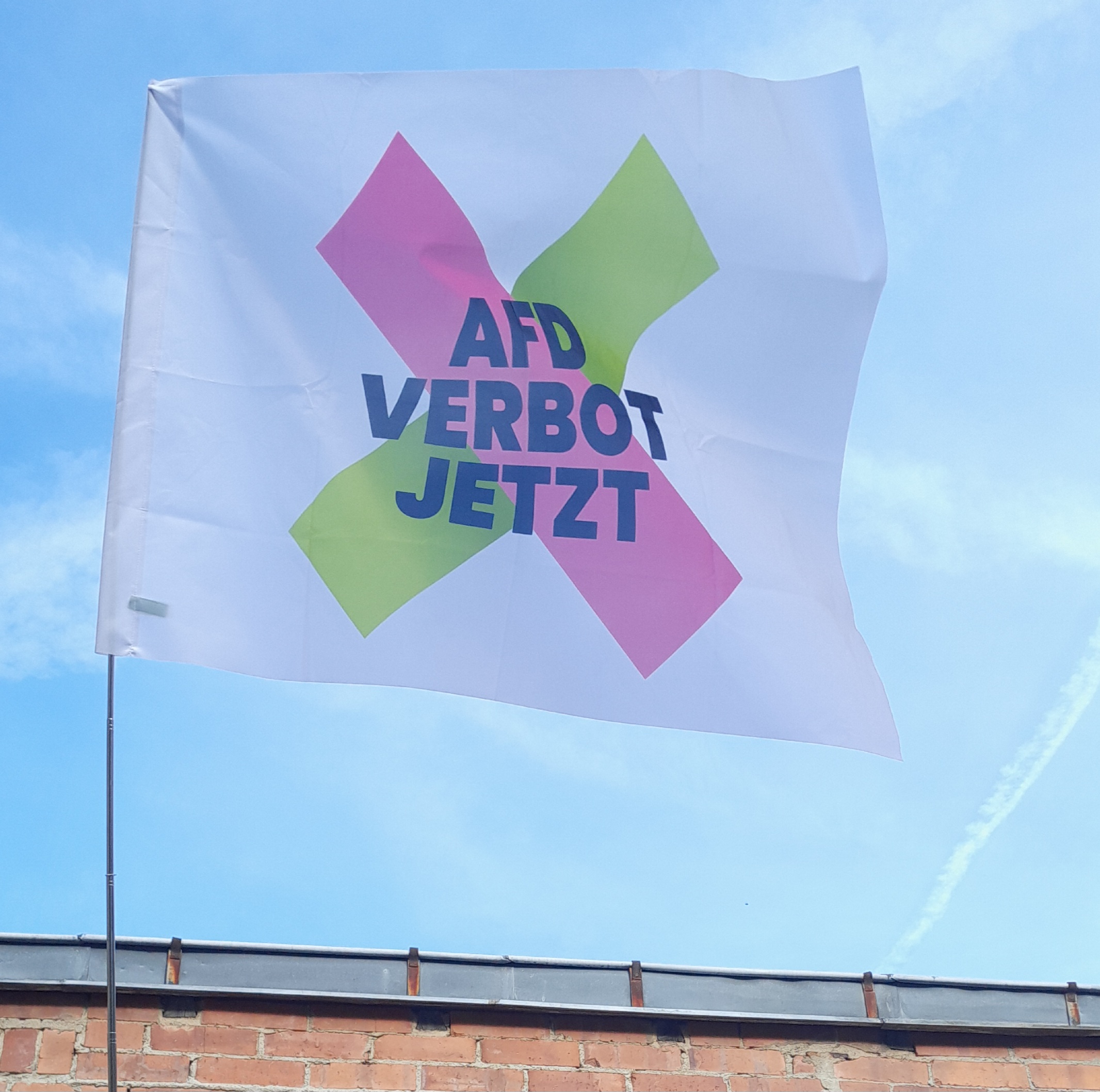 Fahne der Kampagne „AfD-Verbot jetzt!“